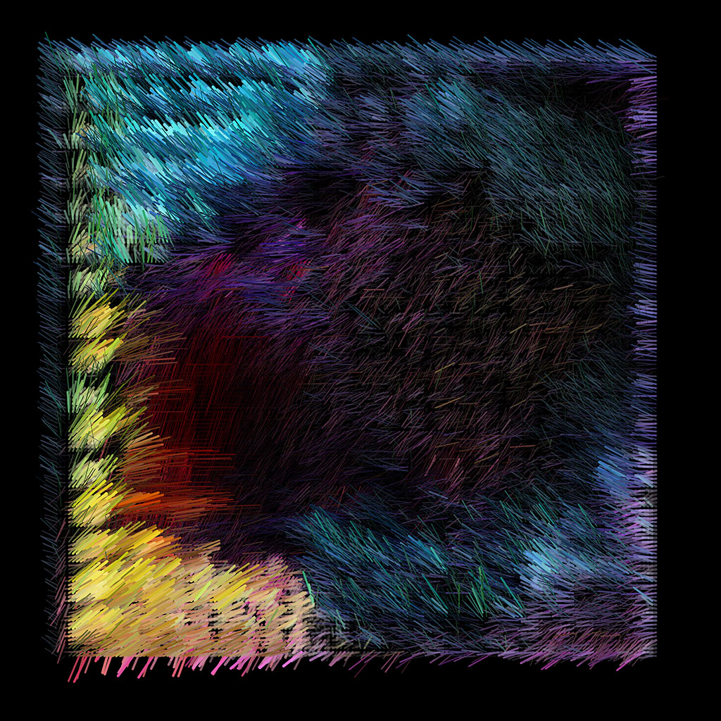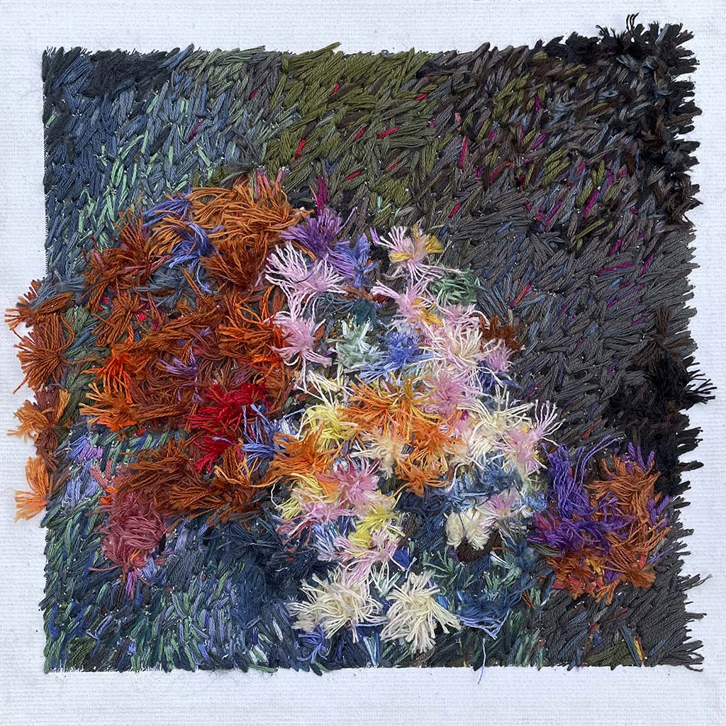 Machine learning systems construct meaning through pattern recognition that operates beyond human perceptual boundaries. This work creates a system where algorithms interpret mending techniques, train neural networks, and generate images that reveal the disconnect between computational and human vision. Through collaboration with Susan Yelavich, these algorithmically generated images, then individually reworked, become physical stitching that completes the circuit of translation between artificial and tactile intelligence. The resulting textile works function as echoes rather than replicas, revealing the fragility that binds code, consciousness, and thread—systems where altering a single element can cause complete structural collapse.