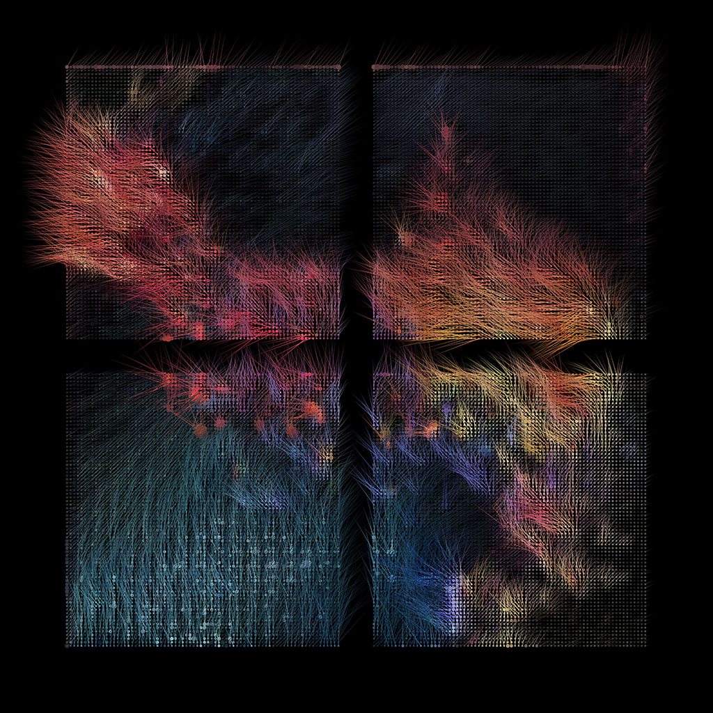 The process functions as material archaeology of knowledge systems. Each manipulated image reveals the machine’s incomplete but systematic understanding of repair—patterns visible to algorithms but invisible to direct observation. When transferred to textile practice, these hidden structures emerge as tangible evidence of how different forms of intelligence organize visual information. The work explores how artificial learning might create its own coherent reality, one that requires human intervention to become legible within our sensory framework.