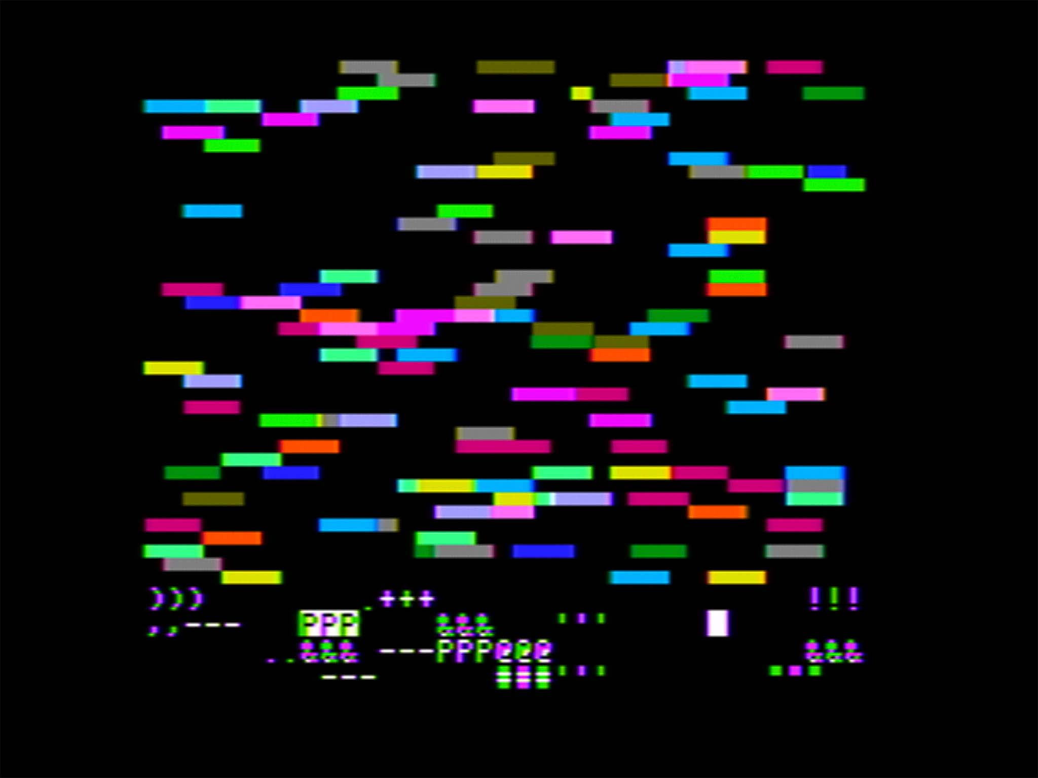 GR/HGR investigates the temporal layers embedded within computational tools, using an Apple II Plus emulator to create works that exist simultaneously in multiple technological moments. The title references Applesoft BASIC’s graphic commands — GR for low-resolution and HGR for high-resolution graphics — foundational instructions from an era when creative computing meant direct engagement with machine constraints. The Apple II’s distinctive visual artifacts, unexpected color combinations from pixel pattern interactions, sub-pixel positioning shifts, glitches that revealed the underlying hardware architecture, become generative elements rather than limitations.